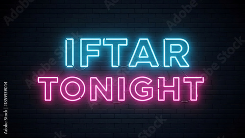 Iftar Tonight Neon Sign in Blue and Pink for Ramadan Iftar Dinner