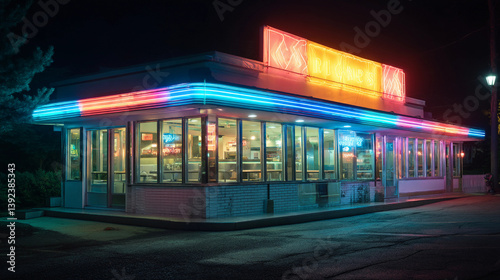 Ignite Your Imagination with a Vibrant Neon Sign Gracefully Overlooking a Classic Diner Experience Today
