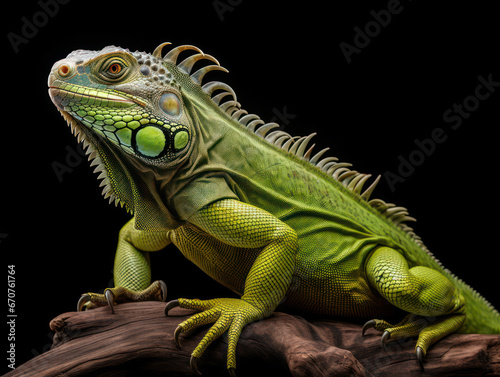 Iguana Studio Shot Isolated on Clear Black Background, Generative AI