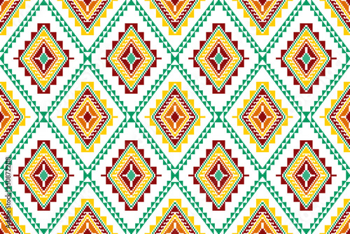 Ikat abstract geometric ethnic textile seamless pattern design. Aztec fabric carpet mandala ornaments textile decorations wallpaper. Tribal boho native textile turkey traditional embroidery vector