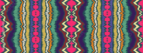 Ikat border. Geometric folk ornament. Ink on clothes. Tribal vector texture. Seamless striped pattern in Aztec style. Ethnic embroidery. Indian, Scandinavian, Gypsy, Mexican, African rug.