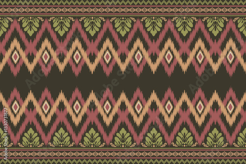 Ikat floral ethnic embroidery. Border Ikat ethnic oriental pattern traditional. Aztec style abstract vector illustration. Design for texture,fabric,clothing,wrapping,decoration,carpet, scarf.sarong.