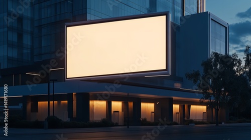 Illuminated billboard mockup on building exterior for advertising and marketing campaign design space