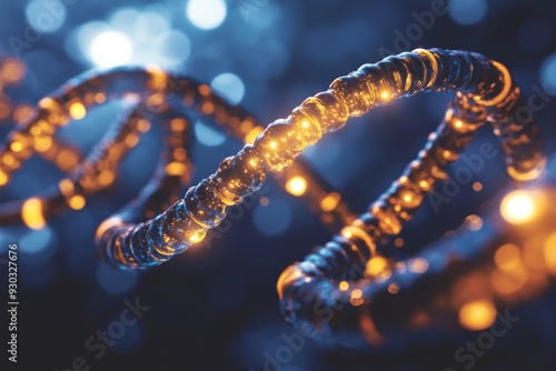 Illuminated blue DNA strand winding through a starry backdrop exploring genetic pathways