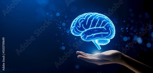 Illuminated Brain Above Hand Symbolizing Knowledge and Technology