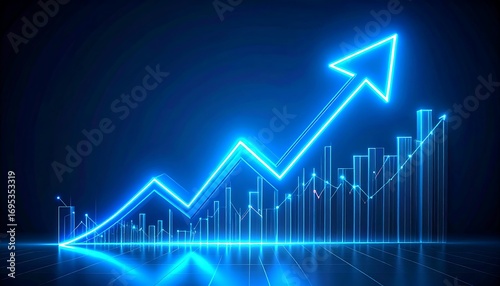 Illuminated chart with upward trend and arrow symbol for growth concept