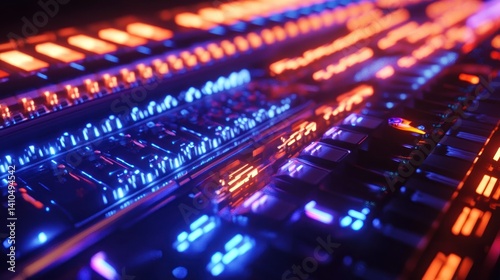 Illuminated circuit board showcasing glowing lights and intricate technology design