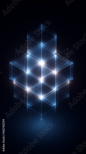 Illuminated Cube Structure: A captivating digital rendering showcases an intricate array of luminous cubes, their edges glowing with an ethereal blue light.