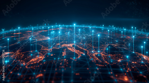 Illuminated Digital Network Grid on Earth Map Representing Global Connectivity