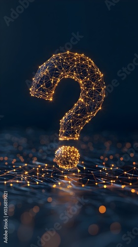 Illuminated Dot Connected Question Mark Symbolizing Business Strategy Challenges and Opportunities