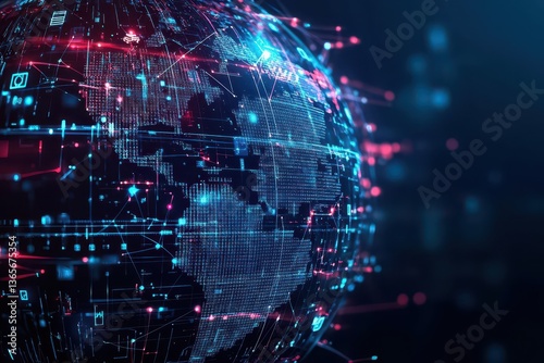 Illuminated Globe Surrounded by Intricate Network of Lines and Dots Representing Global Connectivity and Technological Interactions in Modern Society