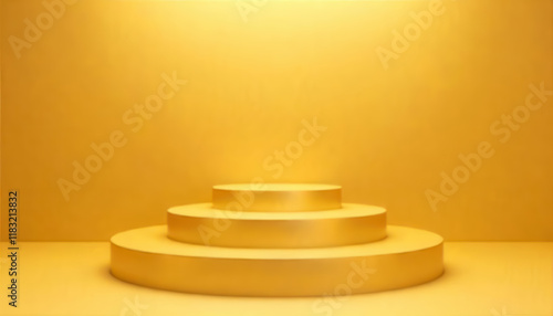 Illuminated golden stage setup for event studio photography minimalist aesthetic background conceptual