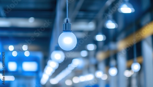 Illuminated Indoor Space: A Single Hanging Light Bulb Against a Background of Blurred Lights