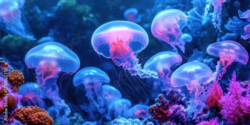 Illuminated Jellyfish Gracefully Swim in Ocean Depths