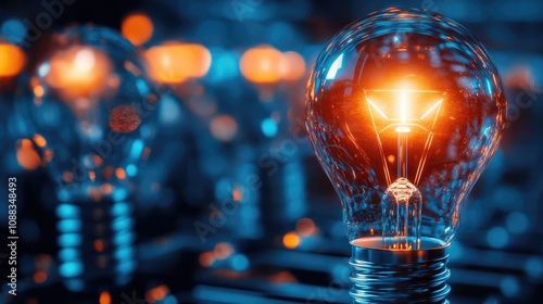 Illuminated Lightbulb Emitting Bright Ideas Against a Blue-Hued Background in a Dimly Lit Environment