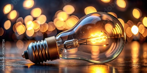 Illuminated Lightbulb with Glowing Filament in a Dim Environment, Evoking Inspiration and Creativity, Perfect for Home Decor, Innovation, and Energy Concepts