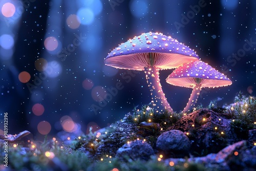 Illuminated Magic: Bioluminescent Mushrooms in Enchanted Dark Forest