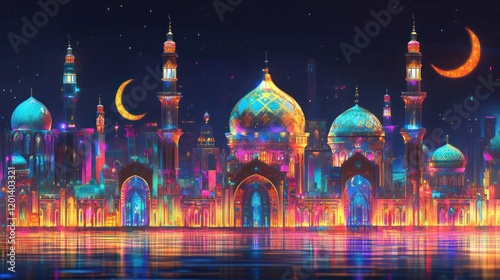 Illuminated Mosques Cityscape at Night Under Starry Skies