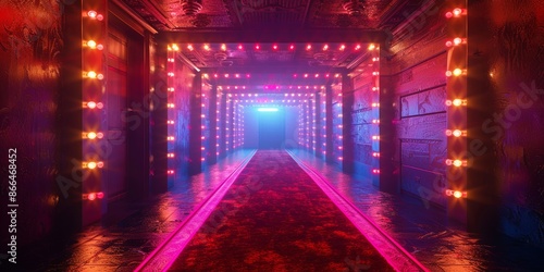 Illuminated Neon Corridor with Futuristic Lights and Glowing Ambiance