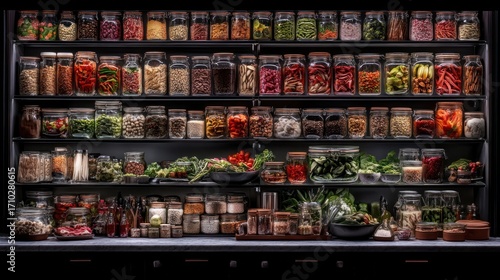 Illuminated Pantry: A Symphony of Culinary Ingredients in Glass Jars