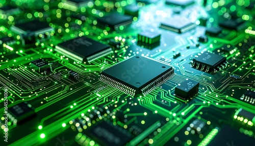 Illuminated pathways: A vibrant exploration of modern green computer circuit board