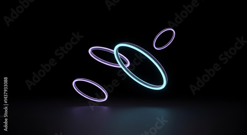 Illuminated Rings Floating Elegantly on a Dark Surface