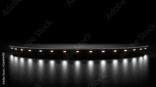 Illuminated stage with lights reflecting in its glossy surface
