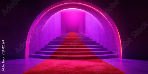 Illuminated staircase with vibrant colors leading to a mystery in a modern venue