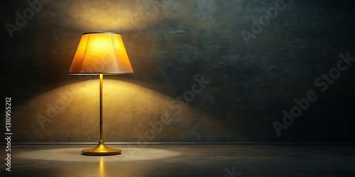 Illuminated Table Lamp Casts Warm Glow Against a Textured Wall in a Dark Room