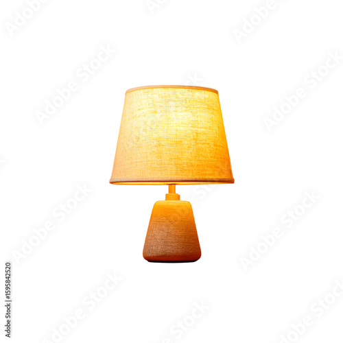 Illuminated table lamp radiating a warm ambient glow against a stark black backdrop