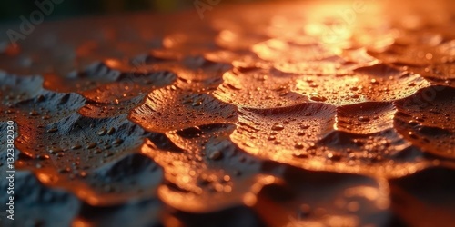Illuminated Textured Surface with Water Droplets A Close-Up Macro Shot of an Abstract Pattern