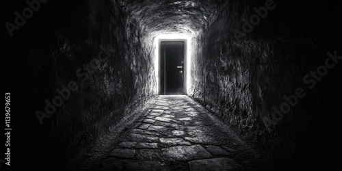 Illuminated Underground Passage: Dark Tunnel with Lights Enhancing Spatial Depth