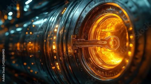 Illuminated vault door golden key unlocking mysterious discount glow emerging
