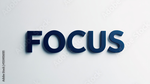 Illuminating Clarity: A striking word Focus in bold, three-dimensional typography commands attention against a clean backdrop, embodying the essence of concentration and clarity.