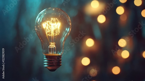 Illuminating Ideas: A Glowing Light Bulb Against a Dreamy Bokeh Background