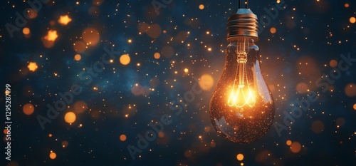 Illuminating Ideas, A Glowing Lightbulb Against a Starry Night Sky