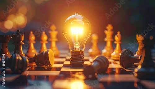 Illuminating Ideas in Strategy with Light Bulb on Chessboard Scene