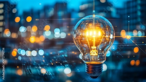 Illuminating ideas lightbulb innovation concept inspiration creativity energy solution technology city glow