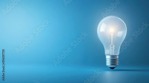 Illuminating innovation, a single light bulb glowing on vibrant blue background
