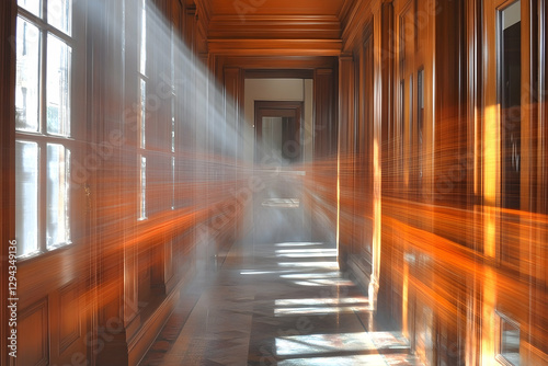 Illuminating Interior, Sun Rays Through the Hallway's Wooden Paneling