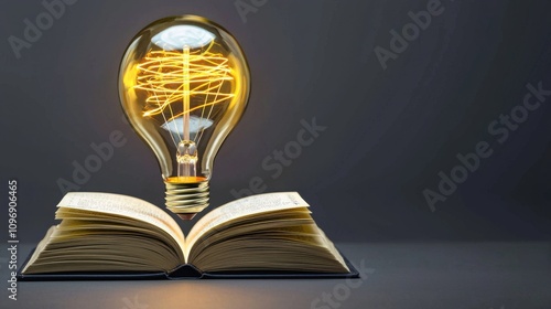 Illuminating Knowledge Book with Glowing Lightbulb Symbolizing and Discovery