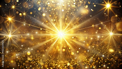 Illuminating starburst with golden rays shines brightly, surrounded by a sparkling, textured finish, offering a mesmerizing abstract background ideal for creative design projects.
