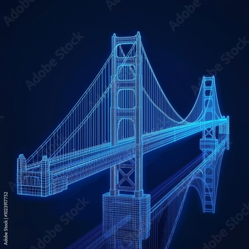 Illuminating the Future: A Stunning Representation of a Futuristic Bridge in Wireframe against a Deep Blue Background
