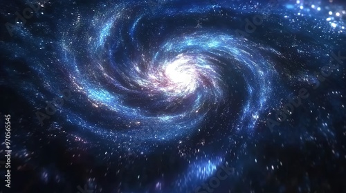 Illustrate a spiral galaxy filled with stars, each arm of the galaxy glowing with countless points of light.