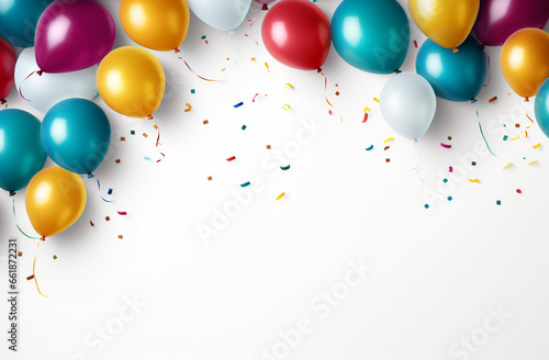 Illustrated balloons create a vibrant and dynamic backdrop, set against a pristine white background. Generative AI.