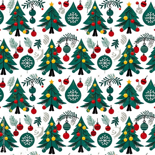 illustrated pine trees with ornaments