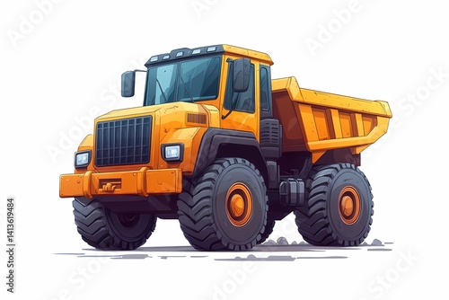 Illustrated Yellow Dump Truck - Heavy Machinery for Construction Site & Mining, Rugged Design & Powerful Engine