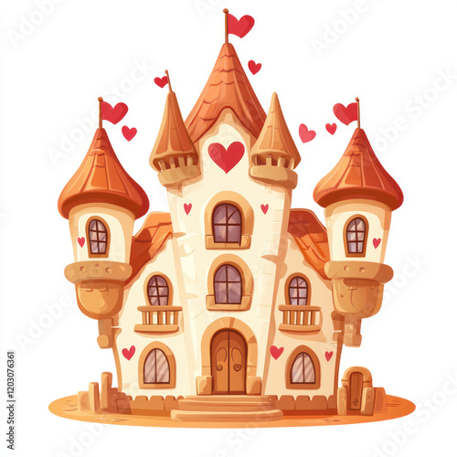 Illustration - Whimsical Castle of Love Adorned with Hearts