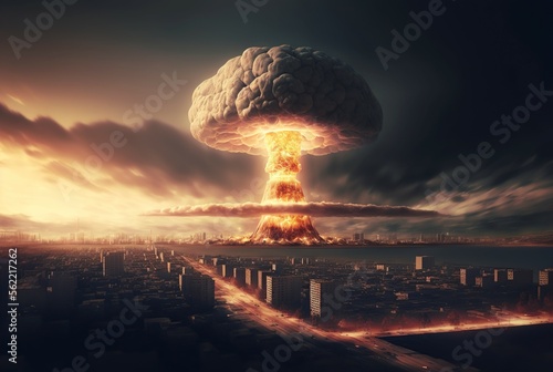illustration, atomic bomb destroying a city, image generated by AI