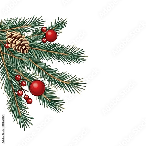 Illustration christmas tree branch with christmas decorations on white background